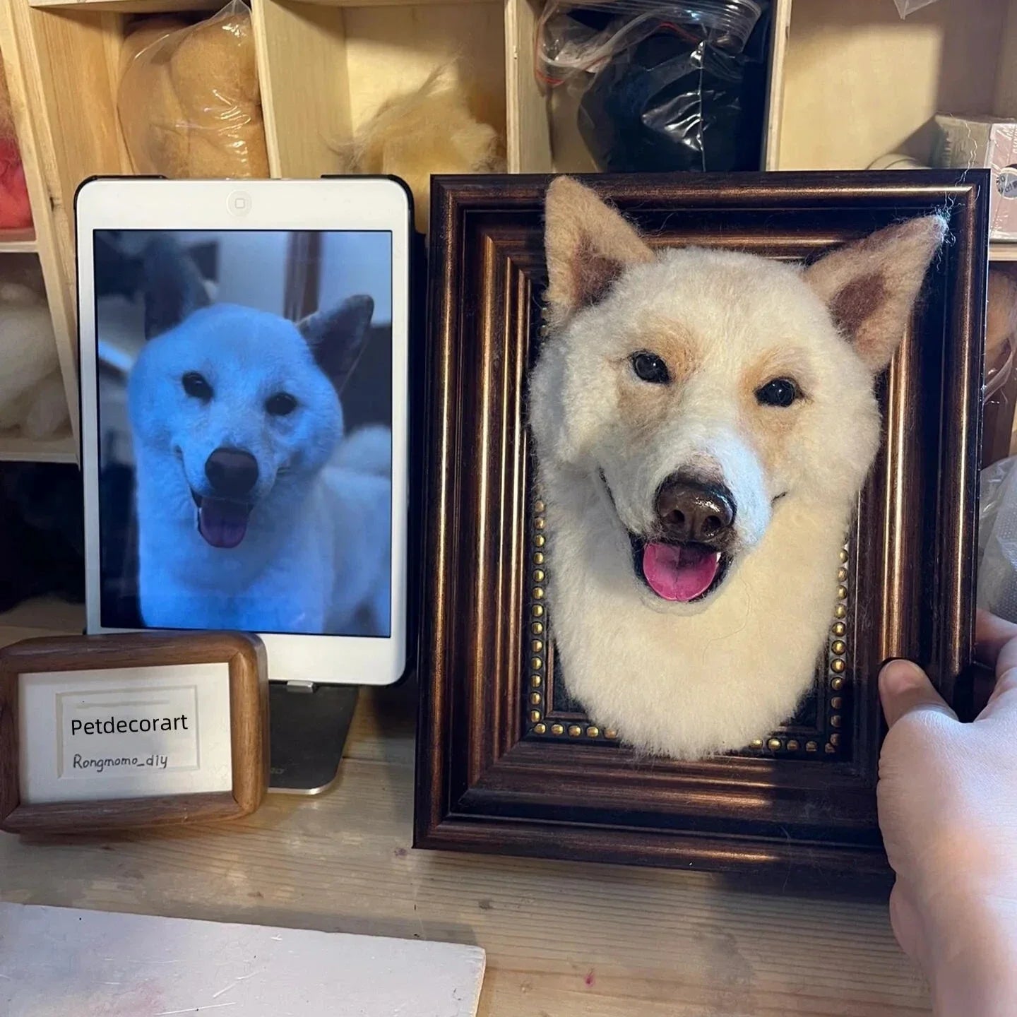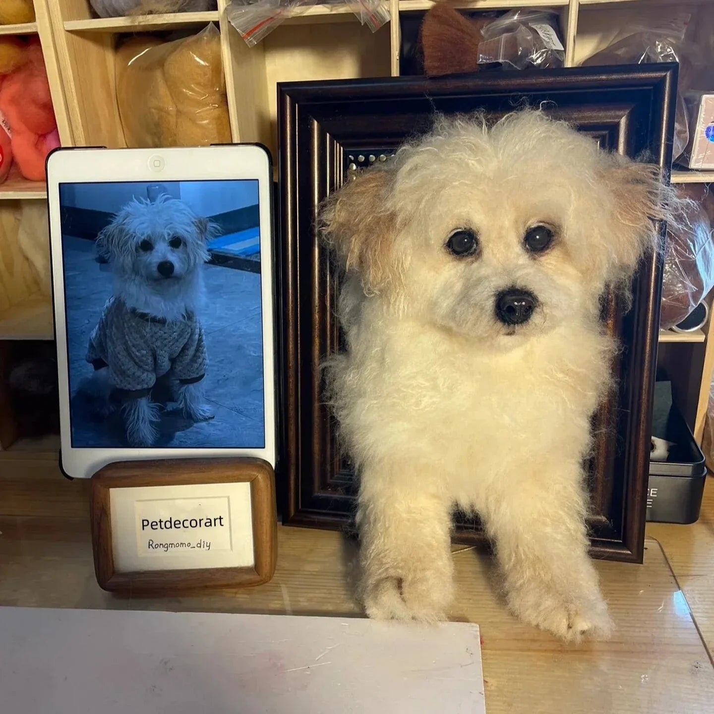 Perfect for pet lovers, these custom pet memorial gifts are a heartfelt way to keep your pet close. Order your needle felted pet portraits with wooden frame today and bring your furry friend to life in a unique way.